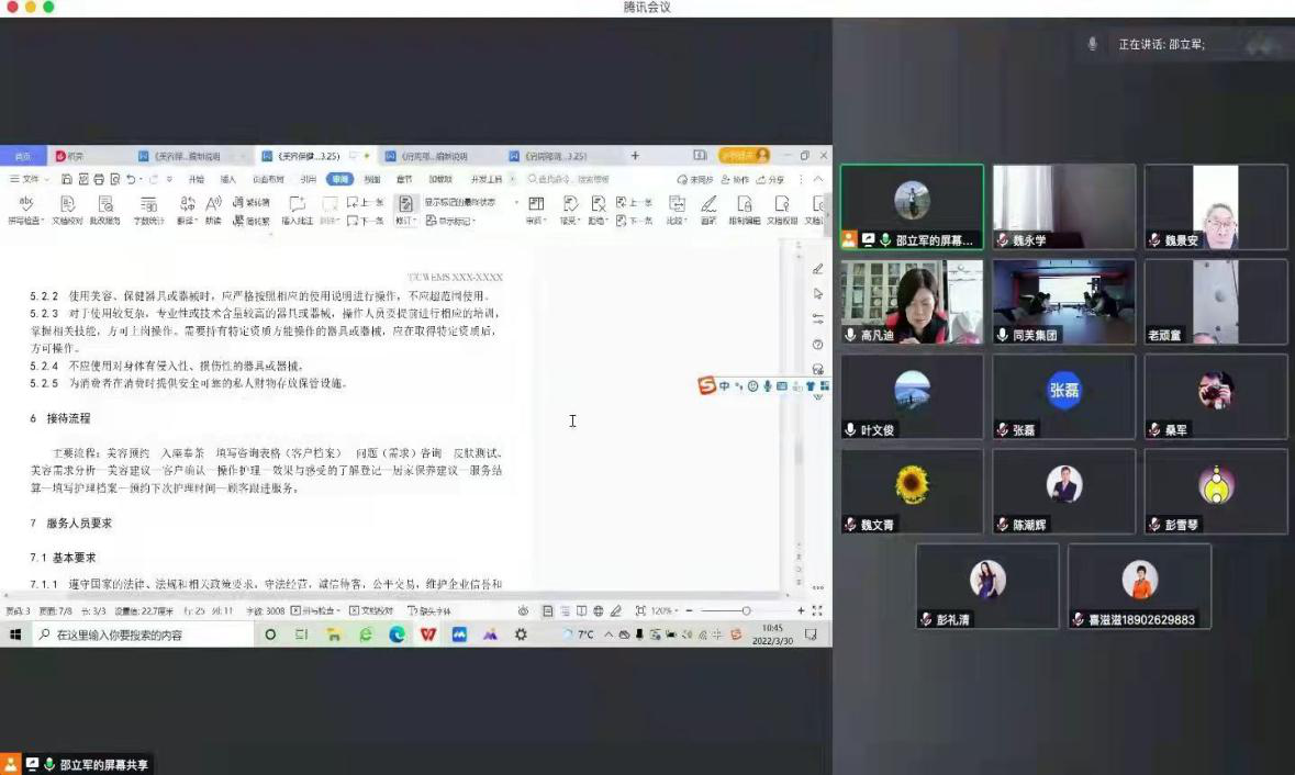 2022年3月30日,为落实疫情防控措施,最大限度减少人员聚集带来的疫情风险,中国水利电力医学科学技术学会归口的《美容保健服务规范》和《肩周部调理保健操作指南》两项团体标准专家研讨会在腾讯会议室以网络视频的形式举行。